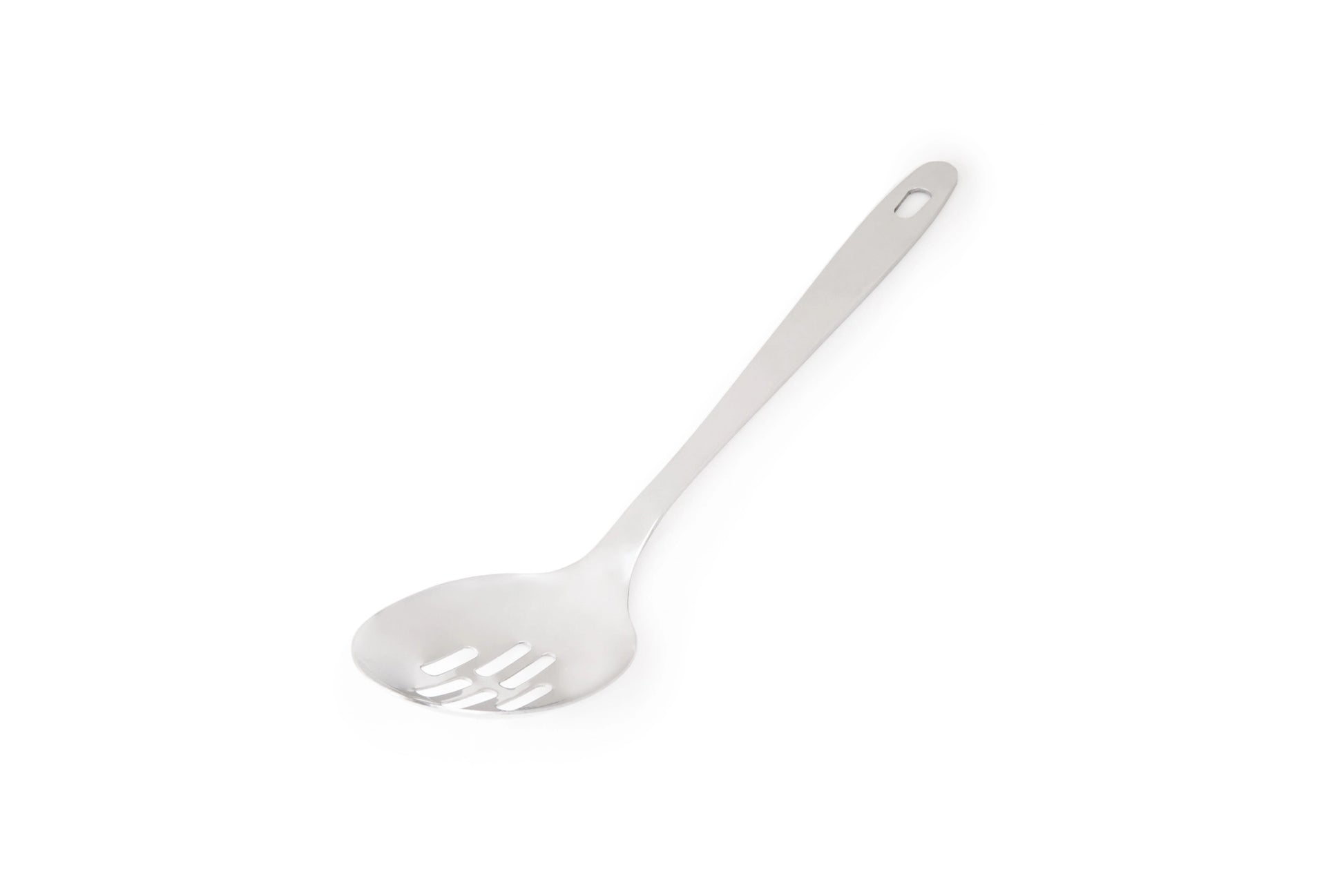 Perfect for cooking and serving your rice. This polished 11.75-inch Pierced Spoon is made of high quality 18/0 stainless steel. It features a one-piece construction, putting an end to food residue build-up in any crevices and minimizing wear and tear.